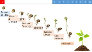 The document outlines a business plan for a training center that will provide courses in music, computer hardware/networking/software, and tailoring. The vision is to be a leader in providing effective training to students, dropouts, unemployed youth, and aging people through advanced technology and up-to-date teaching. The mission is to give complementary courses for employment and entrepreneurship, ensure technological know-how, update skills with changing trends, and facilitate a platform for music lovers. The business will target students, dropouts, unemployed youth, and aging groups. The marketing strategy will involve YouTube, websites, social networks, posters, hoardings, SMS/calls/emails, and personal campaigns.