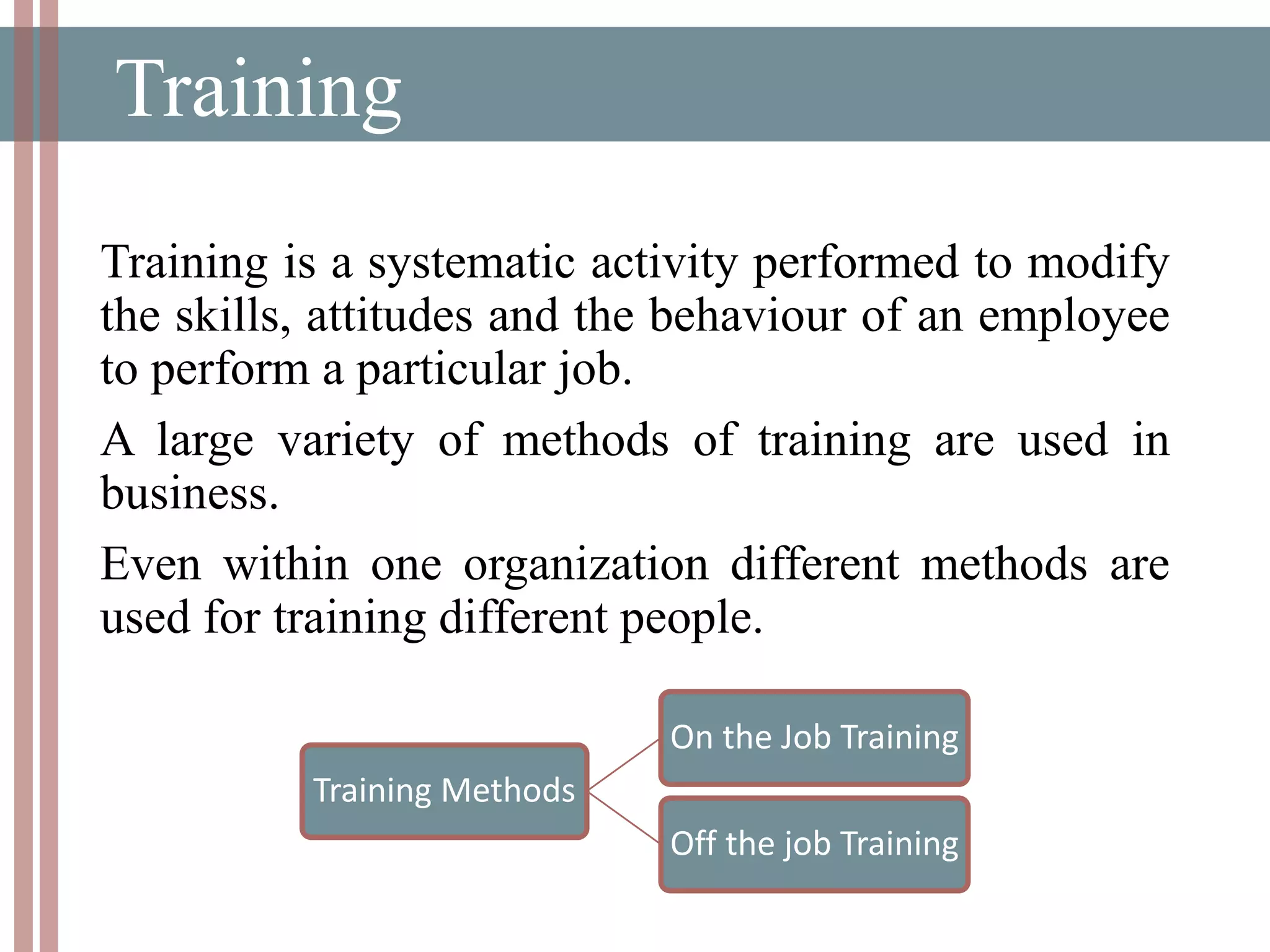 The document discusses various training methods focused on modifying employee skills and behavior, with specific emphasis on on-the-job, off-the-job, role play, and sensitivity training. Role play is highlighted as an active learning technique that fosters real-life interaction and helps employees practice their skills in a safe environment, while sensitivity training aims to raise awareness of interpersonal dynamics and inclusivity in the workplace. Additionally, behavioral modeling is described as a method that demonstrates behaviors for employees to imitate, aiding in practical understanding and application.
