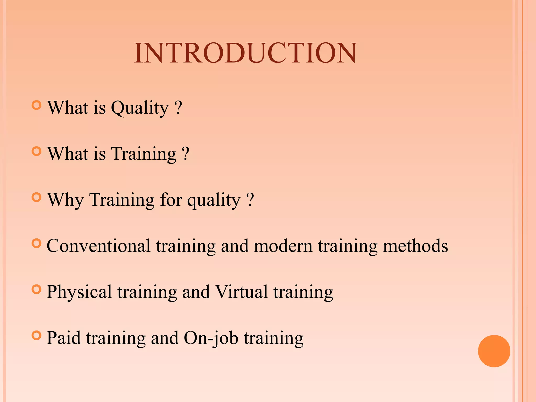 This document discusses training for quality. It begins by introducing quality and different types of training methods. It then outlines the garment production flow chart and discusses managing quality training through delineating responsibilities, focusing on customers, and developing a training plan. It details curriculum design, implementation, delivery methods, measurement, evaluation, and concludes by discussing why training fails and the advantages of quality training. The overall document provides an overview of developing and implementing an effective quality training program.