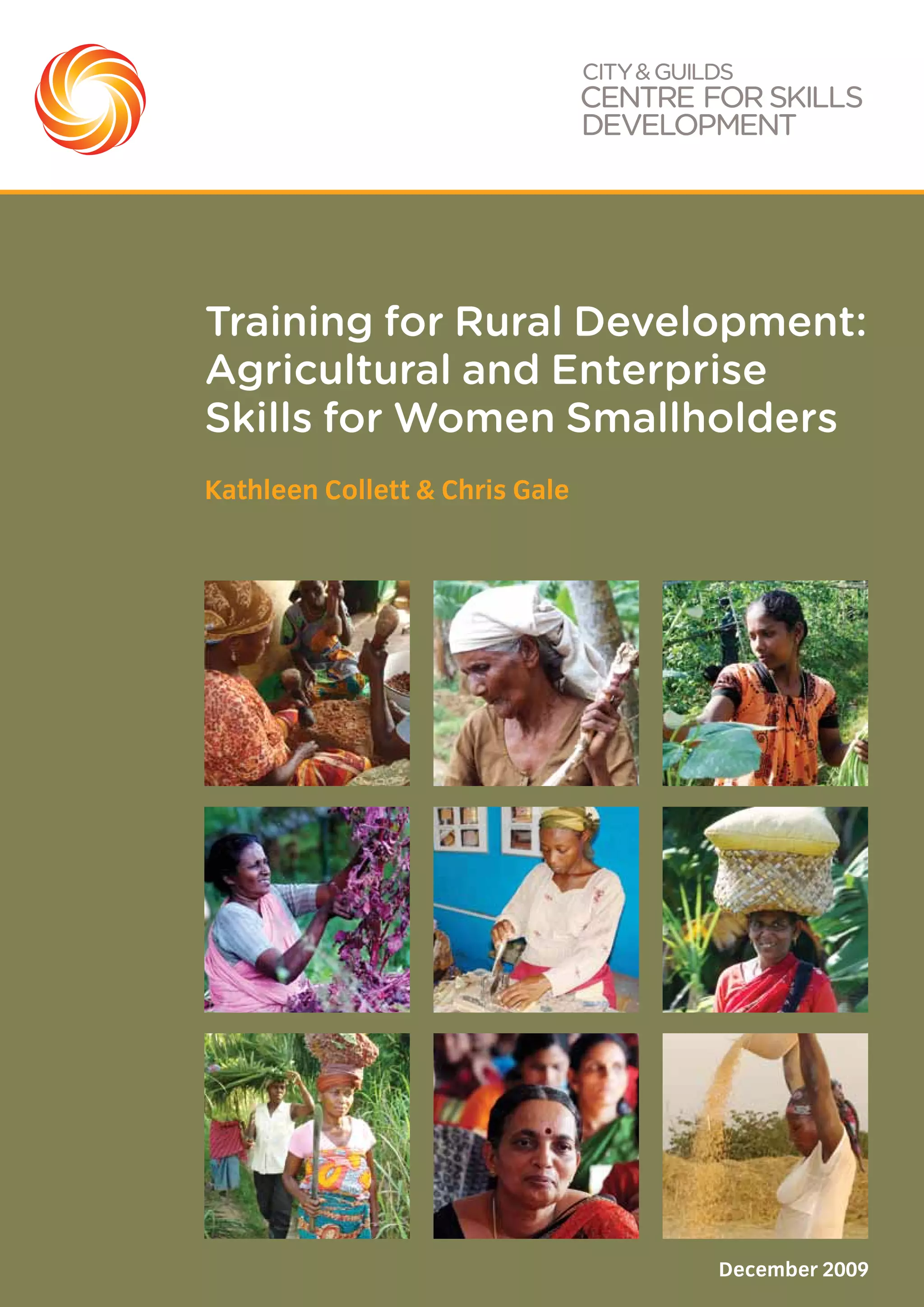 This report examines challenges women smallholder farmers face in accessing and utilizing skills training. It reviews literature on the topic and analyzes four case studies of successful training projects. Key findings include: 1) Enterprise skills are important for rural contexts, but training must consider practical barriers women face and target their needs and interests. 2) Groups can effectively support learning, participation, and collective voice to access services. 3) Participatory approaches to technology development and reducing risks like lack of credit, capital and infrastructure are important for applying new skills. The report provides lessons on designing training that addresses the gender dimensions of these issues.
