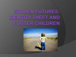 Identity theft significantly affects children, particularly foster youth, with one in 40 at risk, often due to a lack of protective measures and increased vulnerability. Victims face severe consequences such as financial loss, emotional distress, and barriers to employment or housing, while recovery efforts can be costly and complex. The document outlines prevention strategies, warning signs, recovery steps, and legislative measures aimed at protecting children's identities and assisting victims.