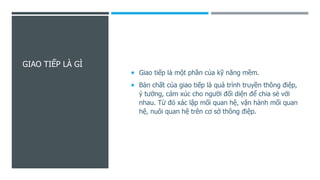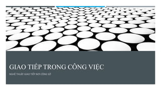 Giao tiếp trong công việc là quá trình truyền đạt thông điệp và cảm xúc nhằm xây dựng và duy trì mối quan hệ. Phương pháp Horenso (báo cáo, liên lạc, thảo luận) giúp cải thiện tương tác trong nhóm, làm tăng hiệu quả công việc và cơ hội thăng tiến. Các nguyên tắc của Horenso bao gồm báo cáo kịp thời, chia sẻ thông tin, và thảo luận để đưa ra giải pháp cho vấn đề.