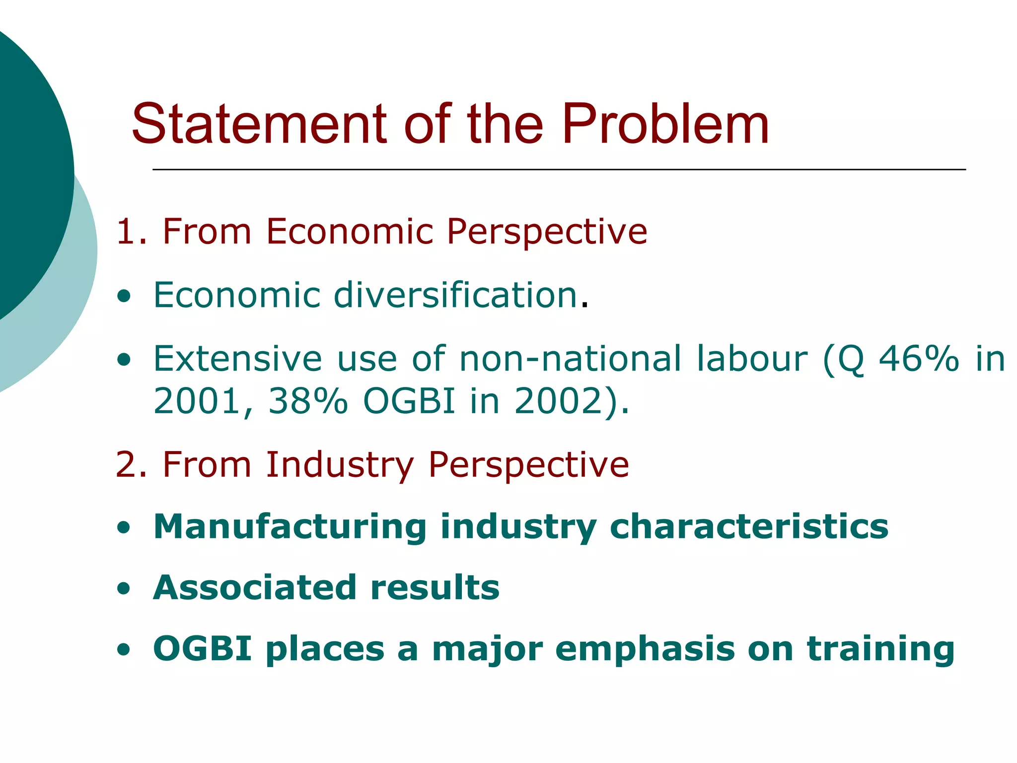 This document discusses a study on employee perspectives on training in Qatar's oil and gas based industries. It investigates the views of Qatari workers at six major companies on the significance of education for training, the match between their education and jobs, needs for further training, and training opportunities provided. Key findings include that while formal education provides basic skills, continuous training is more important for developing specific skills needed in these industries. Most workers felt their education matched their jobs and needed further training to enhance skills. Educational attainment did affect some training outcomes but not factors like training objectives or facilities.