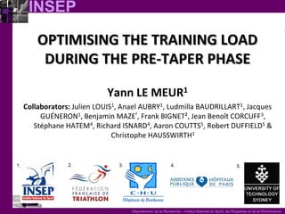 1. The document discusses optimizing training load during the pre-taper phase for peak performance. It describes a study that examined whether developing a functional overreaching state leads to greater performance gains compared to an acute fatigue strategy.