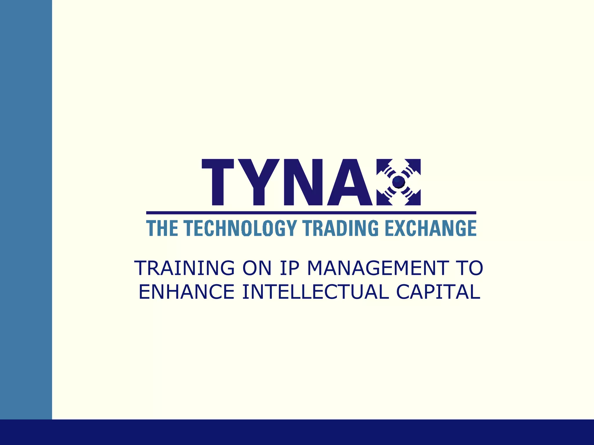 This document provides information on a training program on IP Management to enhance intellectual capital. The objectives of the training are to improve IP Management skills and promote the role of Chief IP Officer in Malaysian companies, research institutes, and universities. The 1-week course covers IP fundamentals, protection strategies, transactions, tools, and a technology maturity assessment. It aims to help participants file higher quality patents and make better business decisions regarding IP.