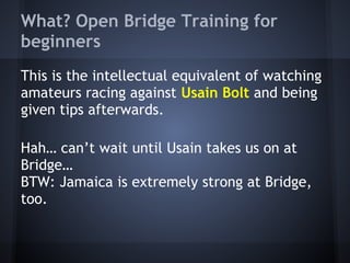 The document provides details on how to anonymously join Fred Gitelman's open bridge training session, scheduled for August 31, 2013. It explains the process of watching the session live, including how to participate as a kibitzer and follow the game without playing. Additionally, it includes links to relevant websites and platforms related to the event.