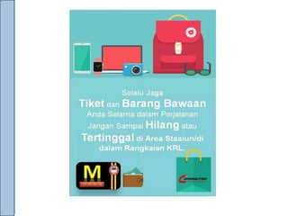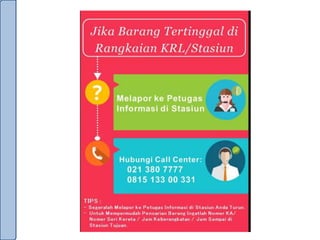 This document provides tips for commuting by train, including matching one's watch to the departure station clock, estimating travel times between stations and home, ensuring one's transit card has enough funds, remembering the train line number in case of getting lost, storing bags safely on crowded trains, being considerate of others by not using phones loudly or spitting in public areas, and taking the second train if two arrive in a row to experience less crowding. Maximum luggage sizes are also noted. Overall, the tips promote efficiency, preparedness, etiquette, and respect when taking the train.