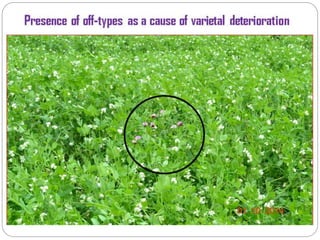 The document discusses guidelines for wheat seed production and quality control in Ethiopia, outlining key considerations for seed classes, field requirements including site selection, variety choice, land preparation, sowing methods, and seed rates. Quality components covered include genetic, physical, physiological, and health aspects. The goal is to provide improved seeds to farmers to boost agricultural productivity and food security.