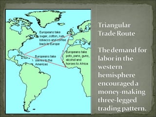 With the arrival of Europeans in the Americas, the demand for slaves from Africa greatly increased to work on sugar plantations and mines. As native populations declined due to disease, Europeans relied more on African slaves for labor. The Portuguese established the first slave plantations in Brazil in the early 1500s to produce sugar, making Brazil very wealthy. By the early 1600s, the British had also introduced slavery to North America where slaves worked as farmers and miners. The capture and trade of African slaves was often violent, with warring African groups and European traders raiding neighboring societies to acquire slaves. Slave labor became essential to the cultivation of lucrative crops like sugar, tobacco and cotton on vast plantations in the Americas.
