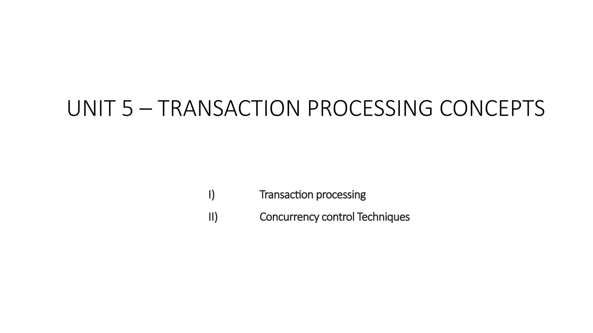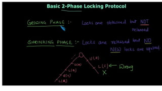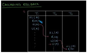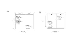 This document covers transaction processing concepts including transaction properties, scheduling, and concurrency control techniques. It provides details on actions performed in database transactions, such as read and write operations, as well as concepts like serializability and recoverability. Additionally, the document discusses concurrency control methods to manage simultaneous transactions and prevent issues such as lost updates and dirty reads.