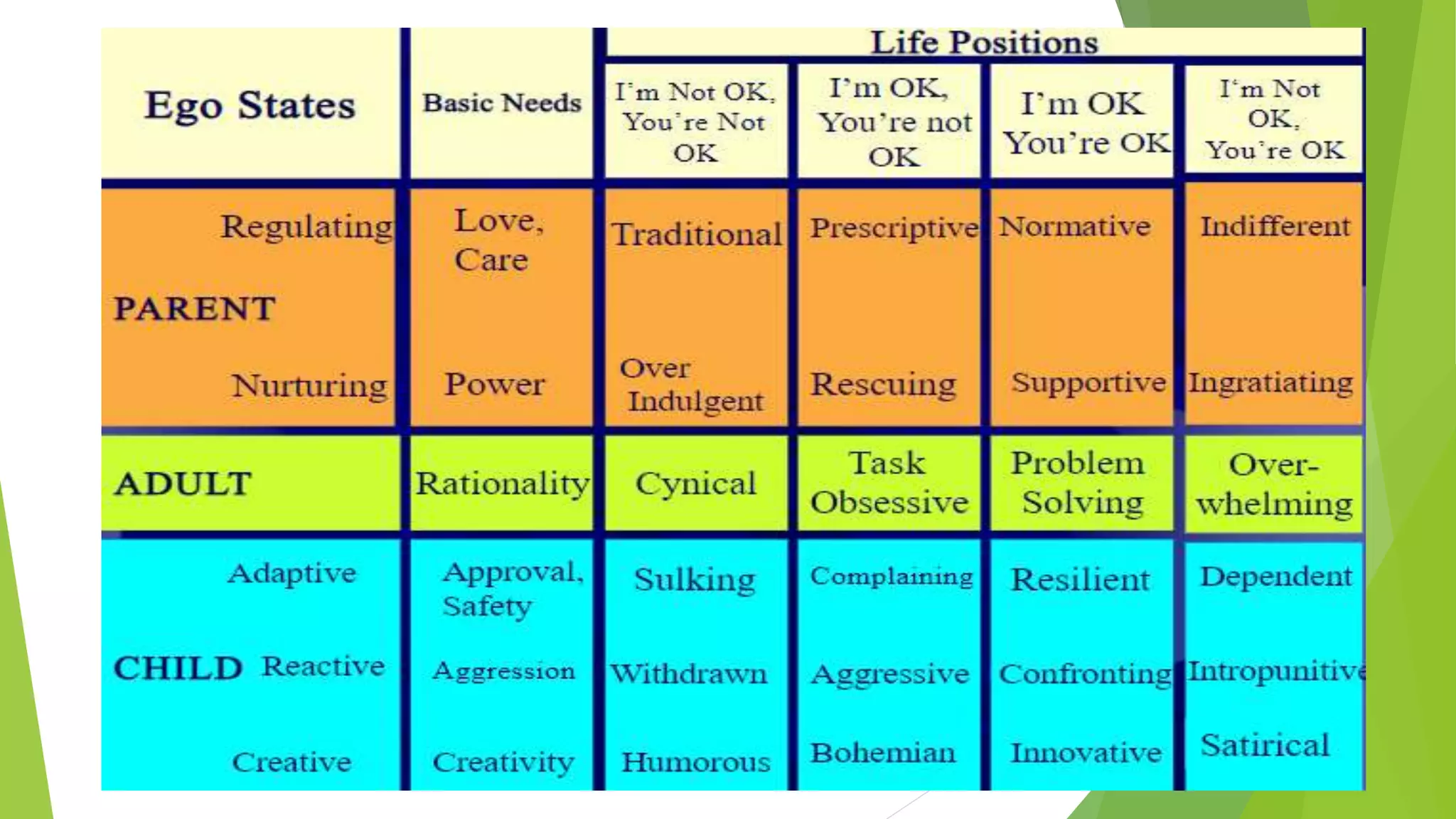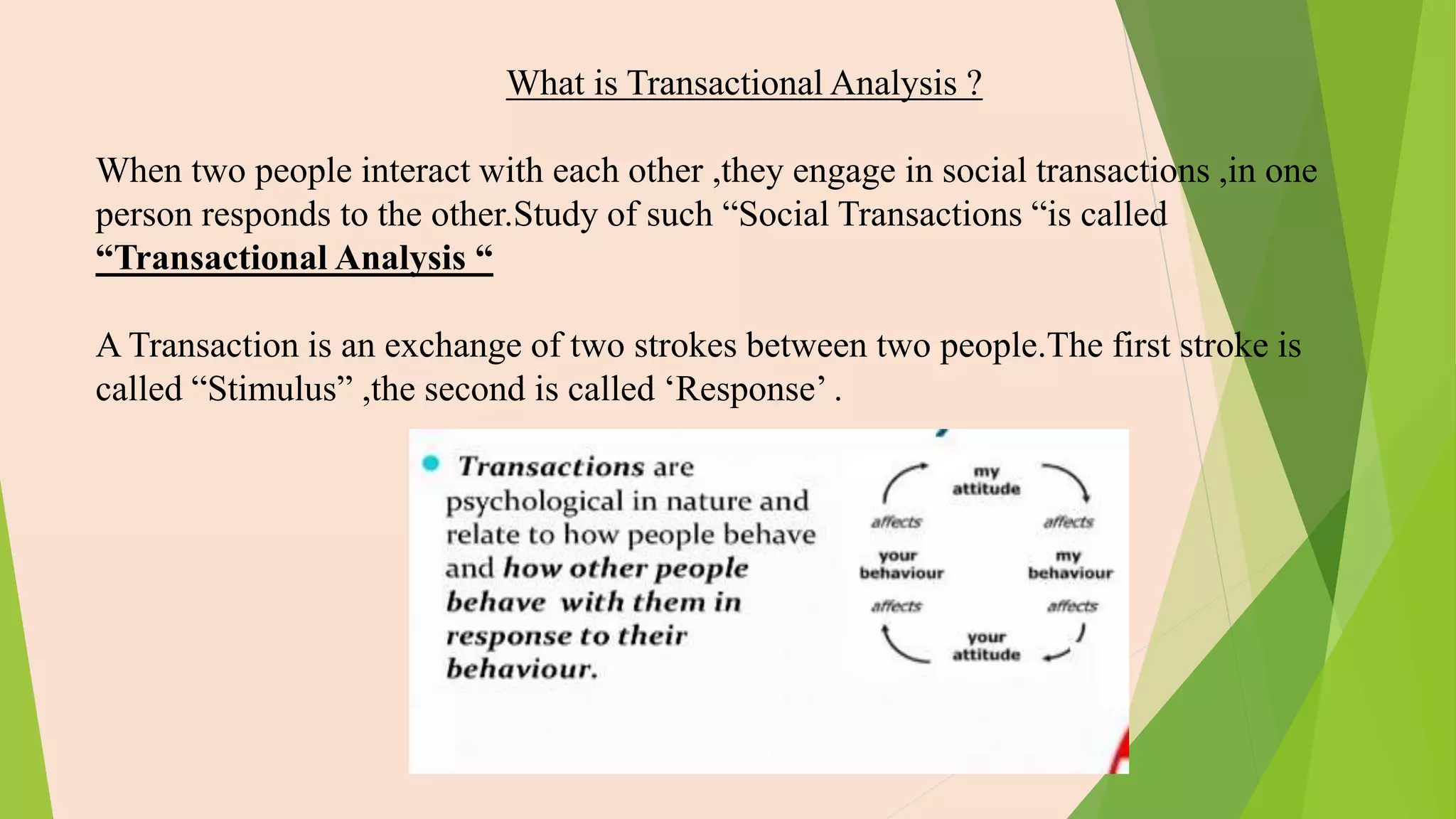 Transactional Analysis (TA) is the study of social transactions where individuals exchange stimuli and responses, revealing their ego states: Parent, Adult, and Child. Each ego state influences behavior and decision-making, with the Child representing emotions and creativity, the Adult focusing on data processing, and the Parent reflecting learned behaviors from caregivers. TA aims to improve interpersonal communication and understanding, enabling healthier interactions and personal growth.