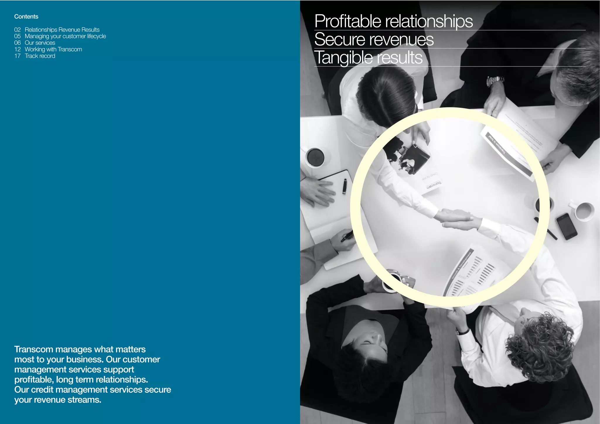 Transcom provides customer management and credit management services to support profitable customer relationships and secure revenue streams for its clients. It manages the entire customer lifecycle from acquiring customers through sales, providing customer service, and securing payment through early collections, contingent collections, and legal collections if needed. Transcom has a global network across 27 countries and manages over 600,000 customer contacts per day for over 350 clients in 33 languages. It prides itself on its flexibility to customize solutions for each client and its focus on delivering results that improve sales, loyalty, revenues, and lower debt for its clients.