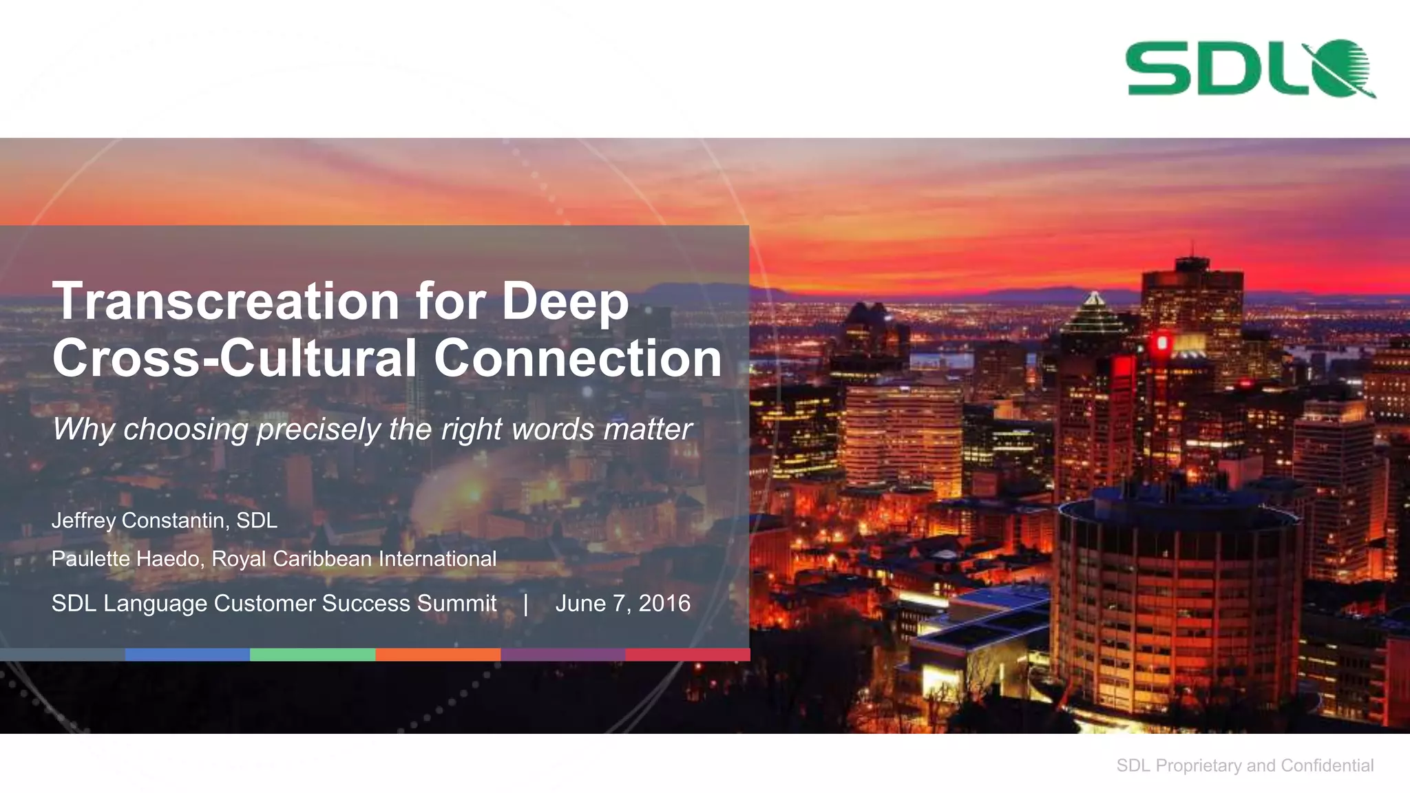 The document discusses the importance of transcreation in achieving effective cross-cultural communication, emphasizing the need for emotional impact and attention to cultural nuances. It contrasts transcreation with traditional translation, highlighting circumstances under which transcreation is necessary, such as complex messages and cultural disparities. The presentation includes guidelines and a checklist for successful transcreation projects aimed at enhancing marketing effectiveness globally.