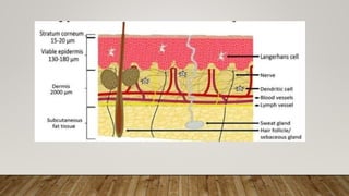 The document discusses transdermal drug delivery systems (TDDS), which allow drugs to be delivered through the skin for systemic circulation, enhancing therapeutic efficacy and reducing side effects. It covers various components, types of patches, advantages, disadvantages, recent advancements, and marketed products, detailing methods like iontophoresis, microneedles, and ultrasound to improve drug penetration. Research continues to innovate in TDDS to enhance disease prevention and improve patient health outcomes.