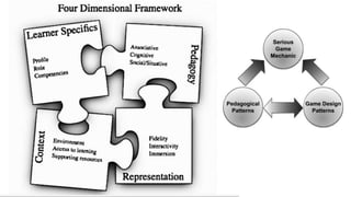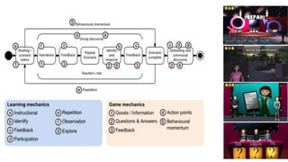 The document discusses the development of game-based learning interventions for children, emphasizing that there is no fixed formula or standard methodology for success. It outlines a holistic approach involving needs analysis, program development, and evaluation, focusing on objectives such as engagement and learning gains. Additionally, it highlights the importance of various strategies and educational goals in designing effective game-based interventions.