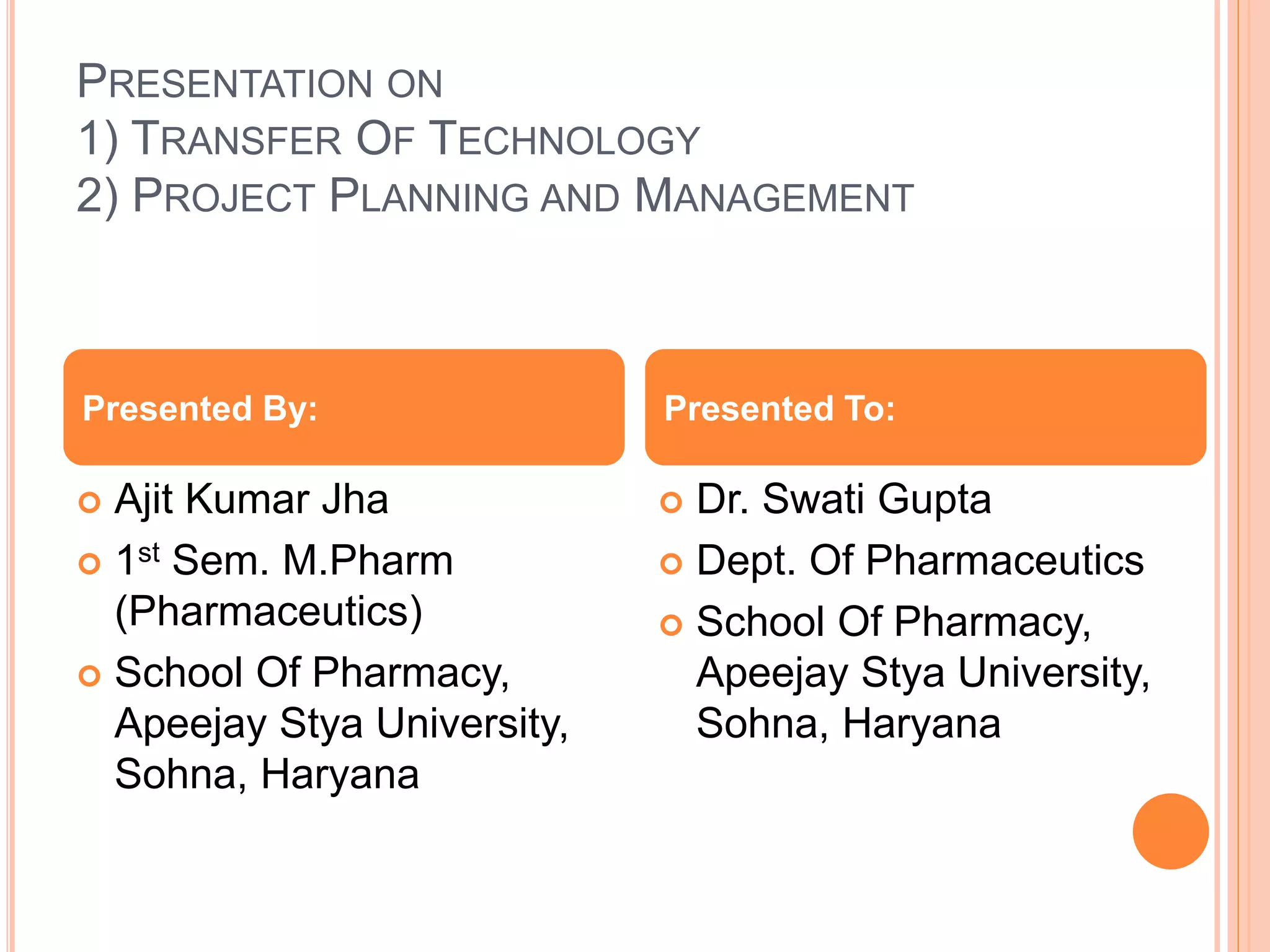 A presentation discusses technology transfer and project planning and management. It defines technology transfer as the process of sharing skills, knowledge, technologies, and facilities between institutions. There are different types of technology transfer, including internal transfers within a company and external transfers between organizations. Successful technology transfers require proper planning, documentation, communication between parties, and verification that the quality is maintained.