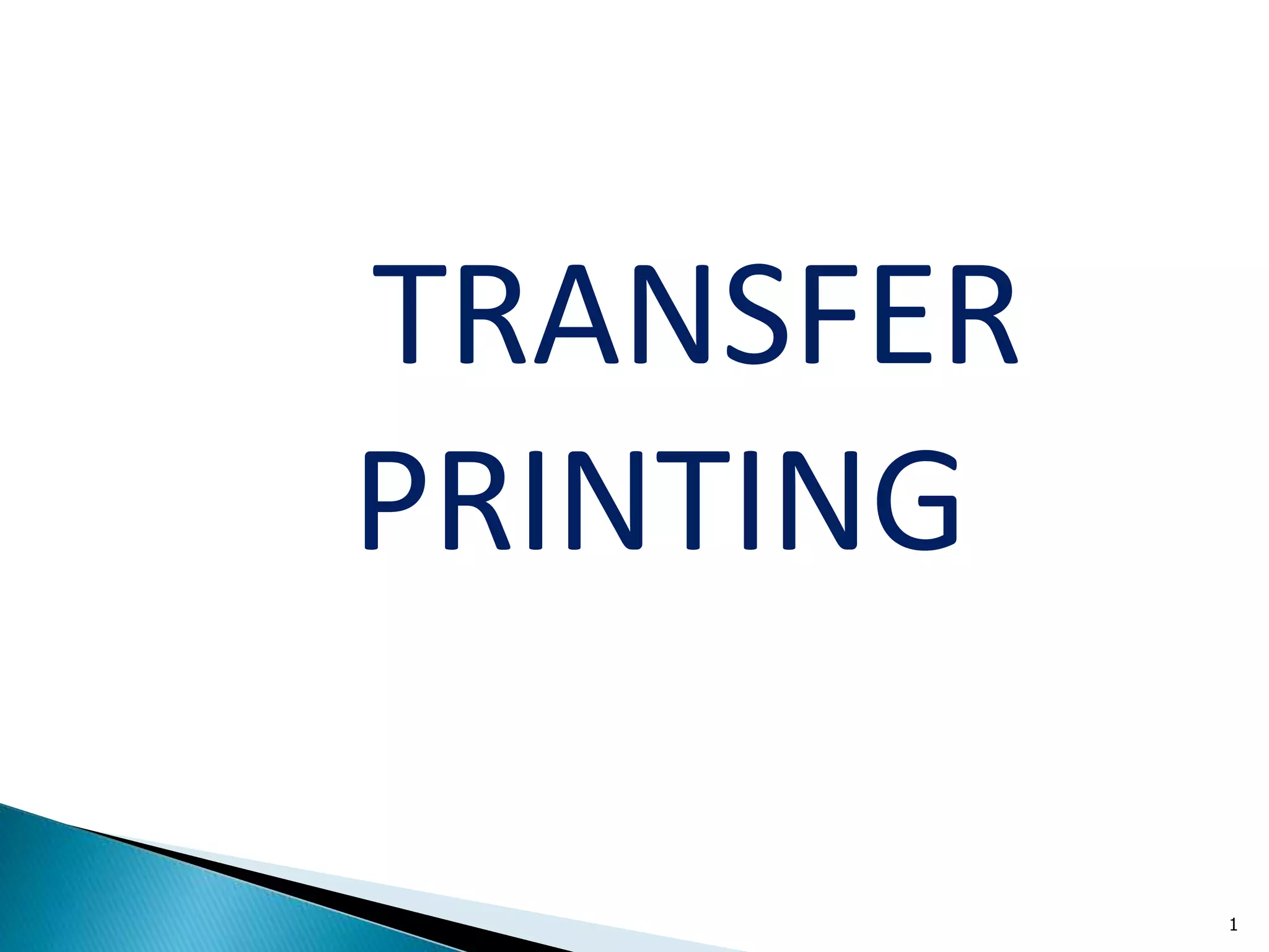 Transfer printing provides a 3-4% share of fabric printing but over 25% of garment printing. It involves printing designs onto paper using inkjet or other printing methods, then transferring the design to fabrics like polyester using heat presses. The key advantages are its ability to provide sharp images at a lower cost than embroidery, with short setup times compared to screen printing. Common applications include garment labels, banners, and home furnishings. The document outlines the history and development of transfer printing, factors that influence the process, types of machines used, and advantages and limitations.