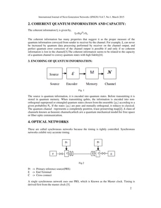 The document discusses the transmission of quantum information via qubits using bosonic channels and synchronous multiplexing for multiple users. It explores the infrastructure for effectively implementing quantum communication, focusing on the capacity of quantum channels, particularly in optical networks, and the challenges in increasing transmission rates. The study highlights the advantages of quantum communication, including security, and points out that the exploration of quantum bosonic channel capacity remains an ongoing challenge.