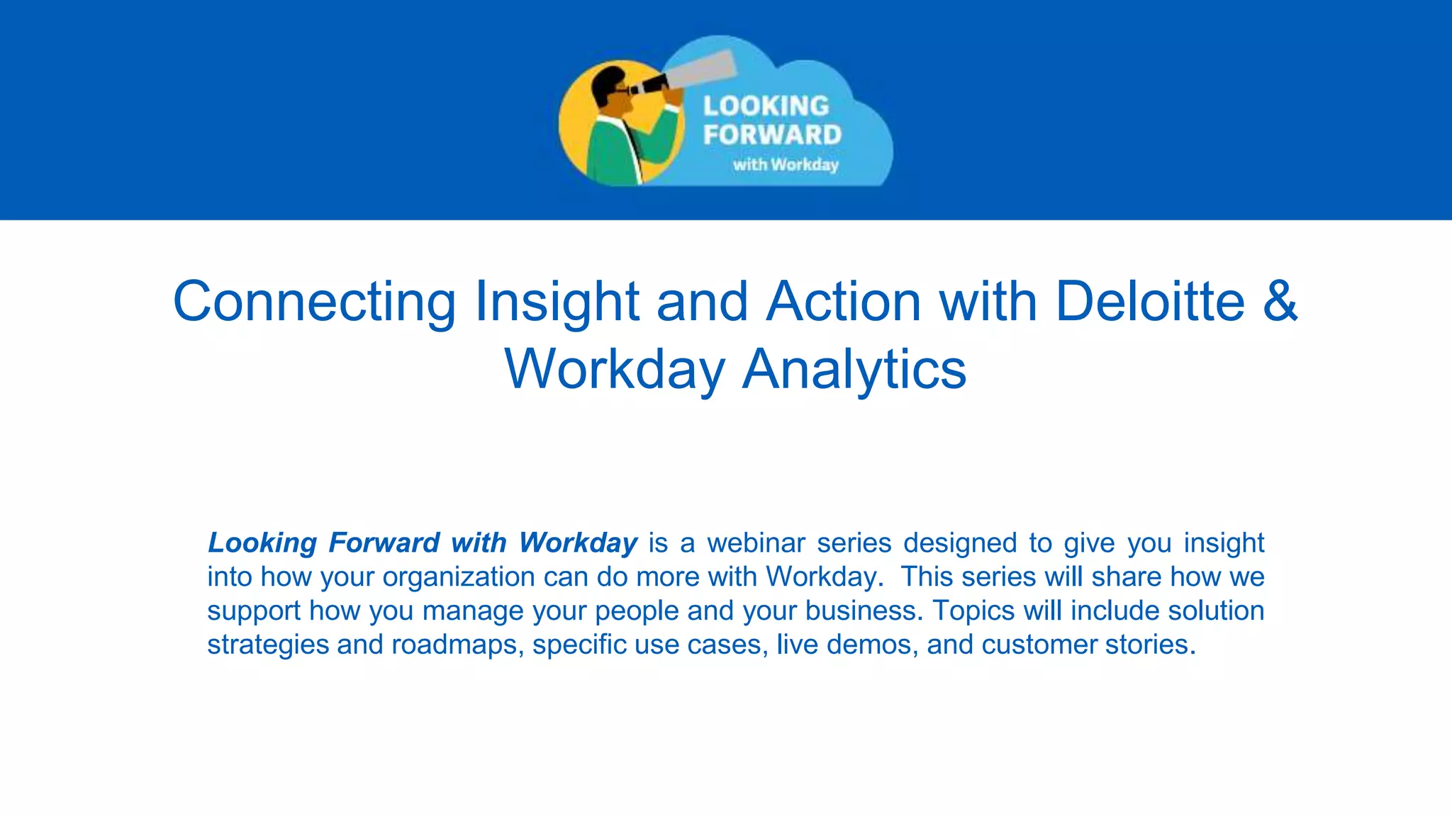 The document outlines a webinar series by Deloitte and Workday, aimed at enhancing organizational use of Workday analytics through strategy discussions, live demos, and customer success stories. It emphasizes the importance of data integration, governance, and the challenges many organizations face in becoming insights-driven. Key topics include Workday Prism Analytics, which provides a comprehensive analytics platform for managing HR and financial data, along with future webinars on relevant themes.