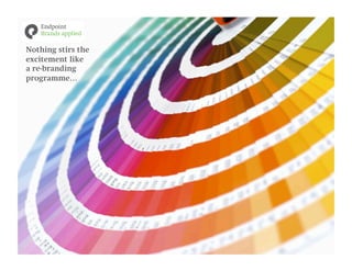 This document discusses the importance of brand implementation and outlines the services provided by an implementation expert. It notes that while new brand identities and guidelines are developed, the actual impact comes from proper physical application. It then asks several questions about planning and executing an implementation. The document emphasizes that implementations can become fragmented without proper organization and control. It outlines the implementation building blocks and services provided, including planning, application design, priority setting, and rollout scenarios. The overall message is that brand implementation expertise is needed to successfully transition identities and achieve maximum impact through proper application.