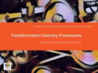 The document discusses frameworks for delivering organizational transformations, including a Transformation Delivery Architecture Canvas and Balanced Scorecard. The Canvas provides a high-level overview of creating a shared IT vision, improving collaboration between teams, investing in people, and increasing operational agility. The Balanced Scorecard can be used to evaluate key performance indicators across customer, financial, internal business, and learning and innovation perspectives to guide strategy.