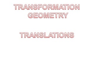 This document discusses translations in geometry. It begins by defining a translation as a horizontal or vertical slide that moves a figure without changing its shape or size. It then provides examples of translating points and figures by: