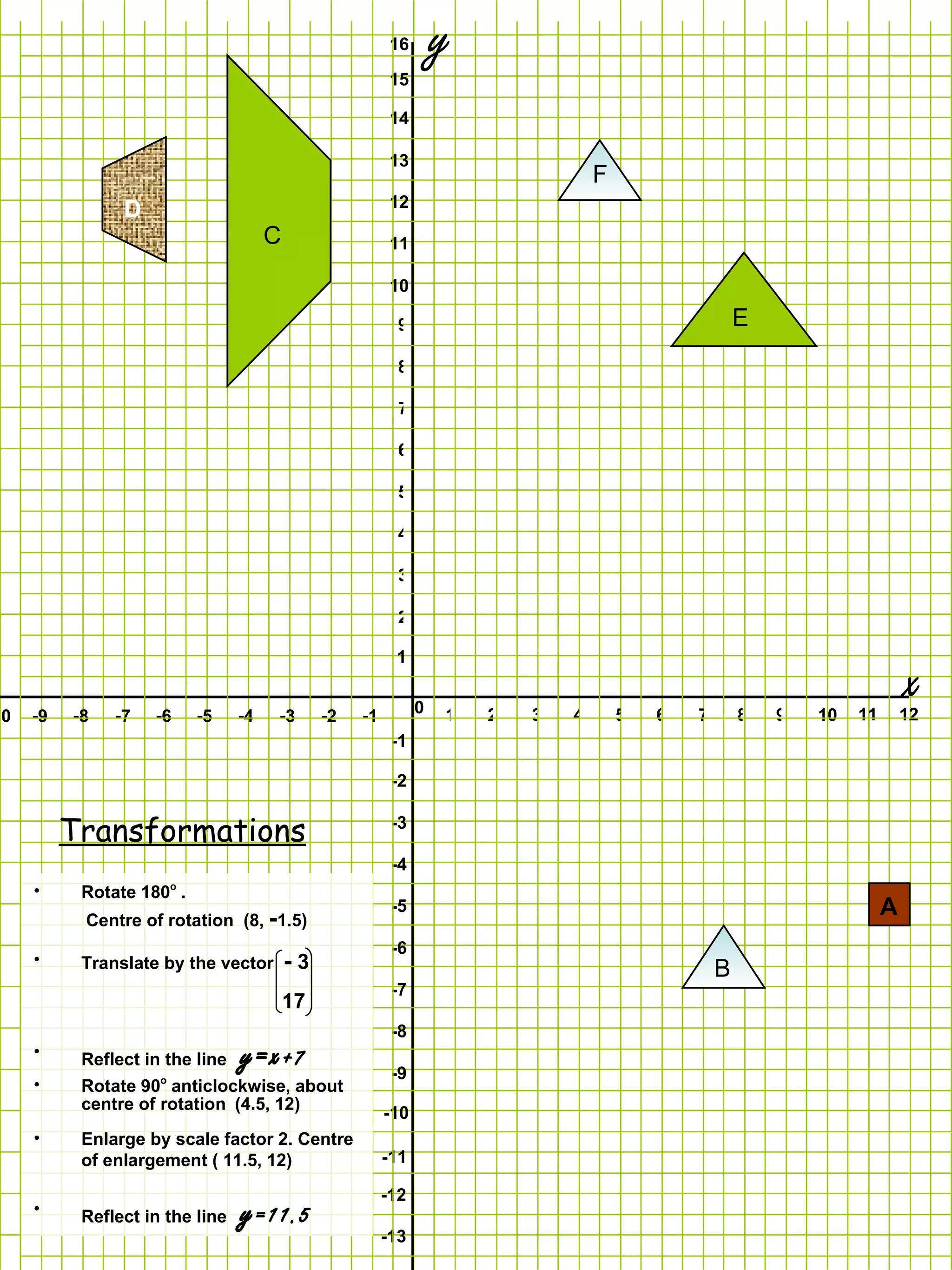 4) A 90 degree anticlockwise rotation about the point (4.5, 12)