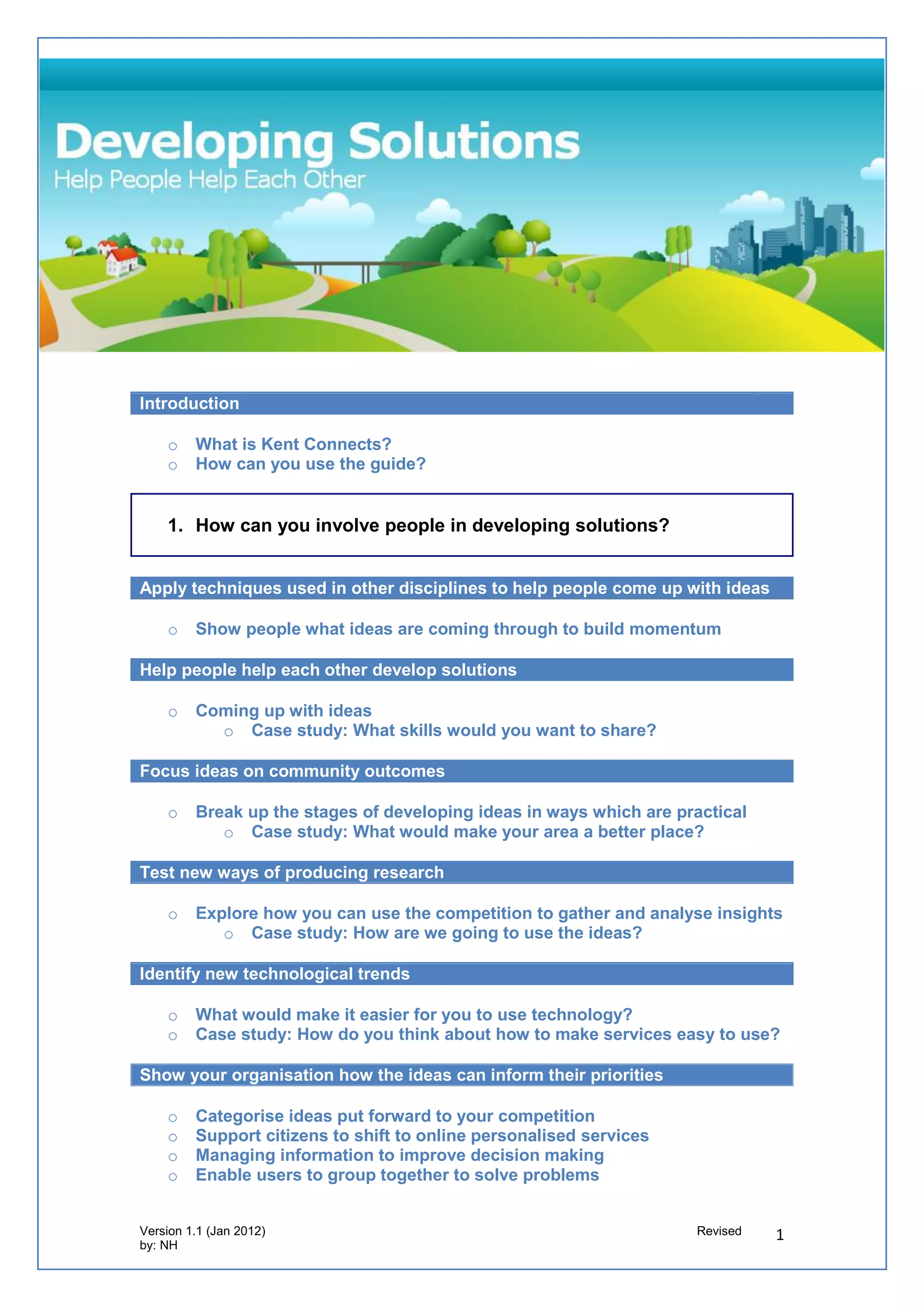 The document aims to help organizations run competitions that generate ideas and prototypes to inform service development through public engagement and collaboration with