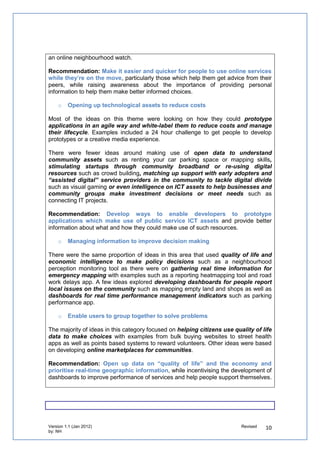 The document provides guidance on running a competition to develop digital solutions to local challenges. It discusses: