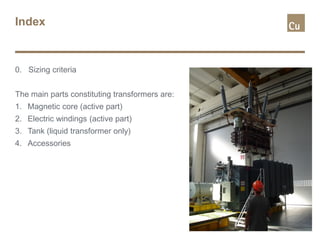 2. Sizing criteria includes considerations like core induction level, current density, and power rating.