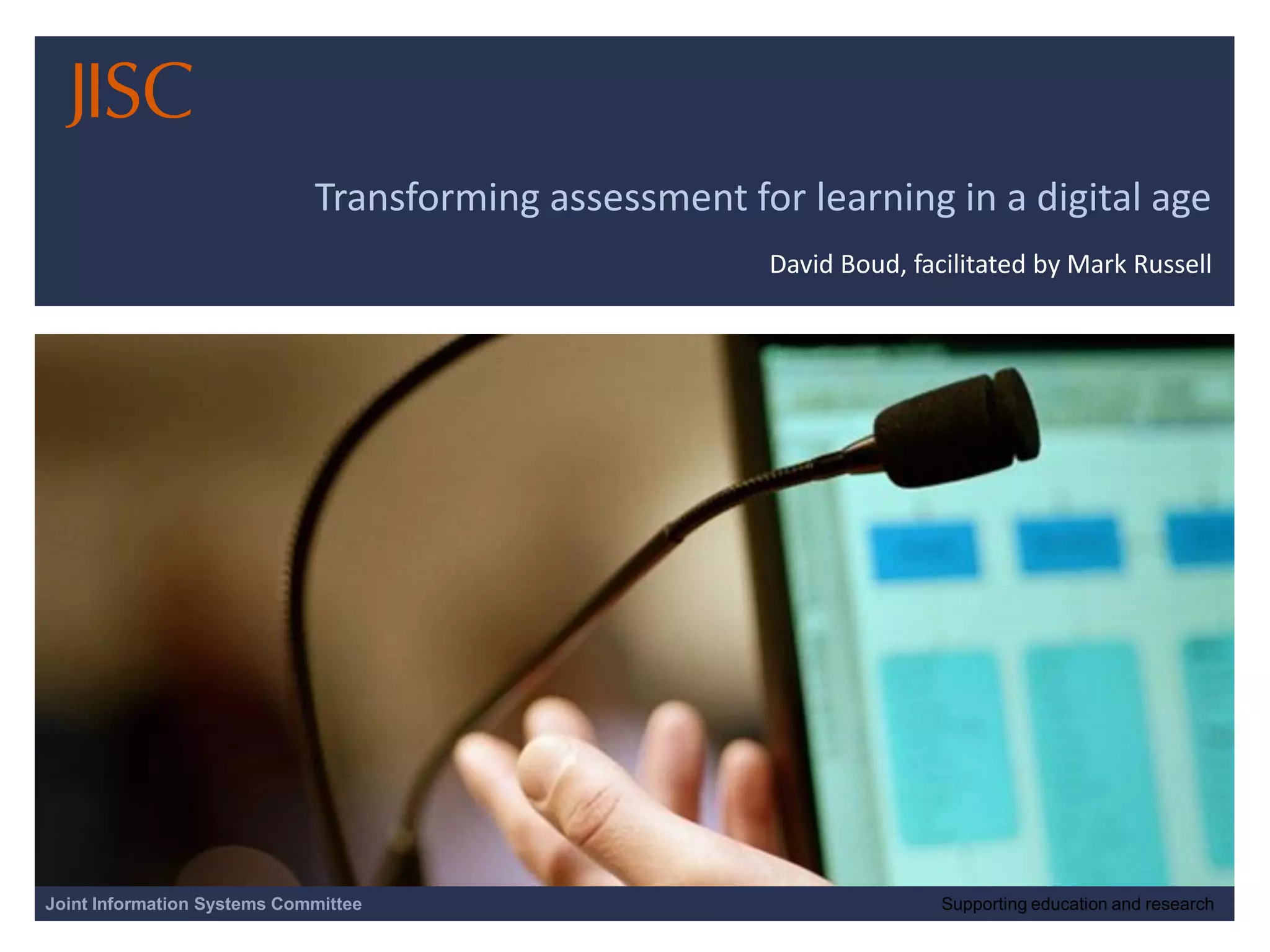 David Boud gave a presentation on transforming assessment for learning in a digital age. Some key points: