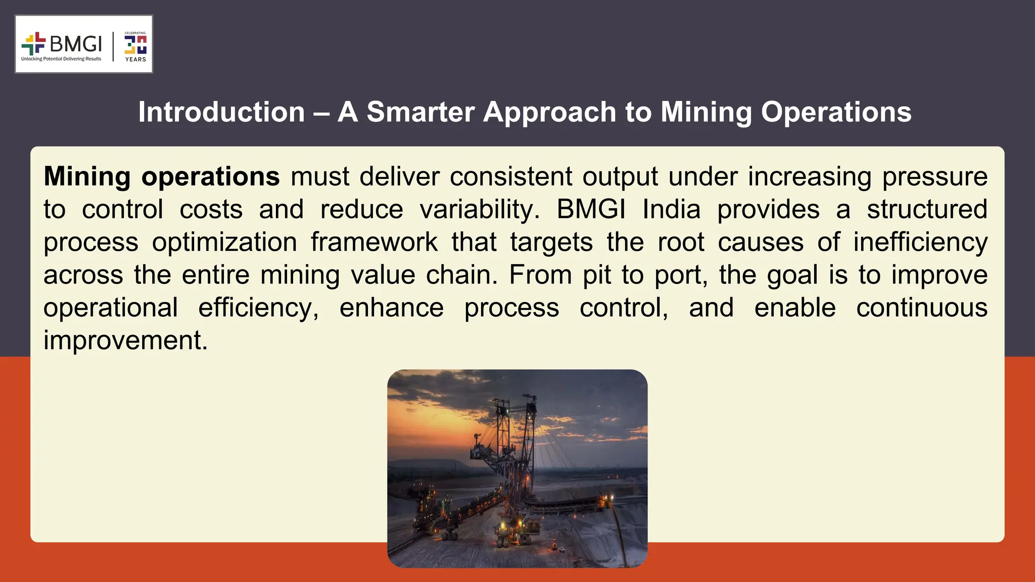 BMGI India optimizes mining from pit to port using Lean Six Sigma, root cause analysis, and performance systems for sustainable efficiency gains.