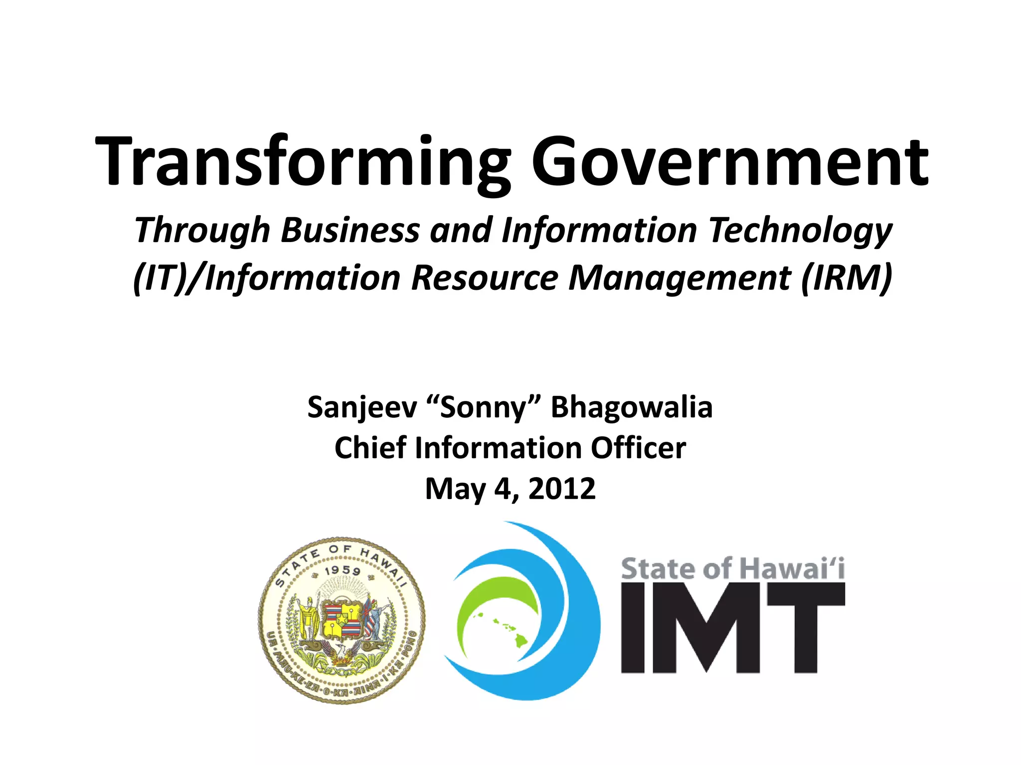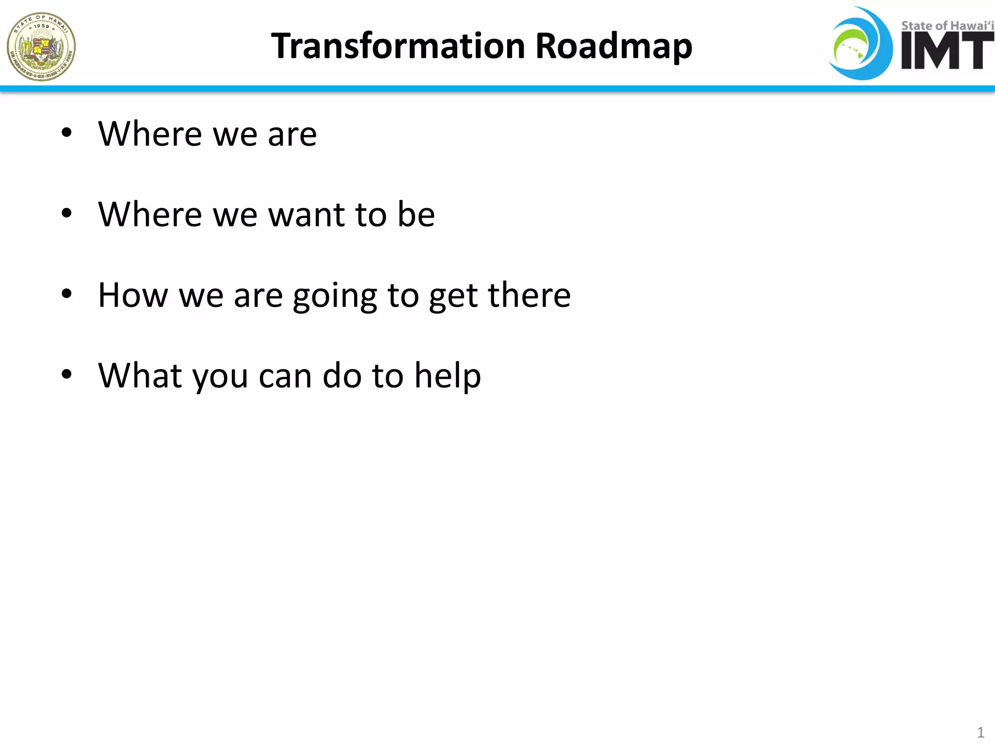 This document outlines a transformation roadmap to modernize Hawaii's government through business and information technology improvements. It identifies key issues like high duplication of effort, disconnected IT systems, and aging legacy applications across state departments. The roadmap proposes addressing root causes like a lack of coordination and budget cuts through four foundational recommendations - establishing an enterprise focus, governance, reengineering business processes, and strengthening technical infrastructure. If implemented, the transformation is expected to benefit citizens through improved online services, employees with streamlined workflows, and the state through reduced costs and improved outcomes.