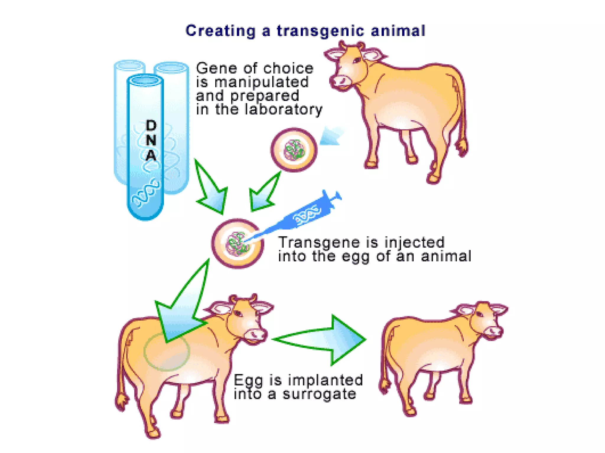 This document discusses the benefits of transgenic animals and provides several examples. It describes how Herman, a transgenic bull that carries the human gene for lactoferrin, was bred and how his offspring could provide nutritious milk for developing nations. It also explains how transgenic animals could be used to produce disease-resistant livestock and organs for transplant. Finally, it outlines the process of microinjection to create transgenic animals and how the new traits are passed on to future offspring.