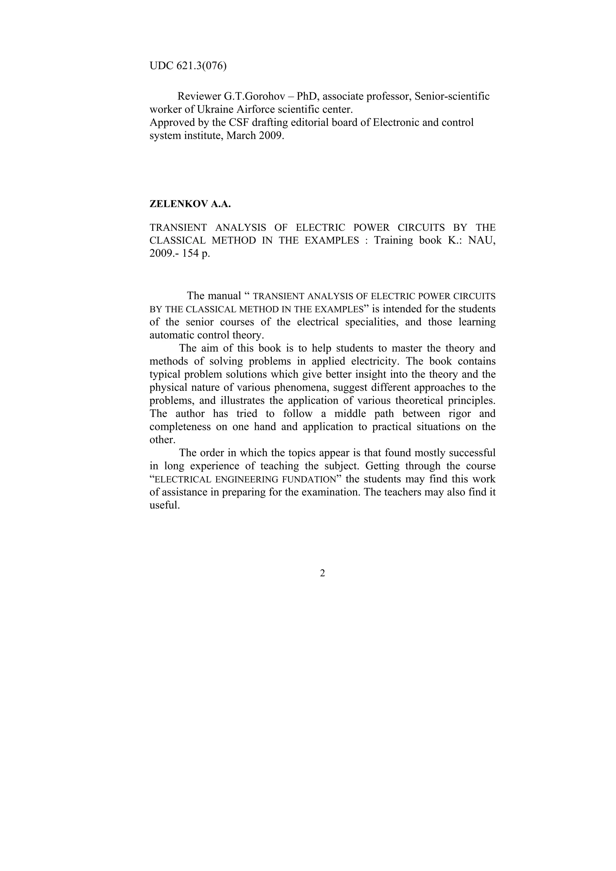 The document is a training book titled 'Transient Analysis of Electric Power Circuits by the Classical Method in the Examples,' aimed at advanced students in electrical engineering. It covers the theory and methods for analyzing transient responses in electrical circuits using classical techniques, providing solutions to typical problems for better understanding. The book serves as a link between introductory courses and more specialized texts, and is recommended for both students and professionals in the field.