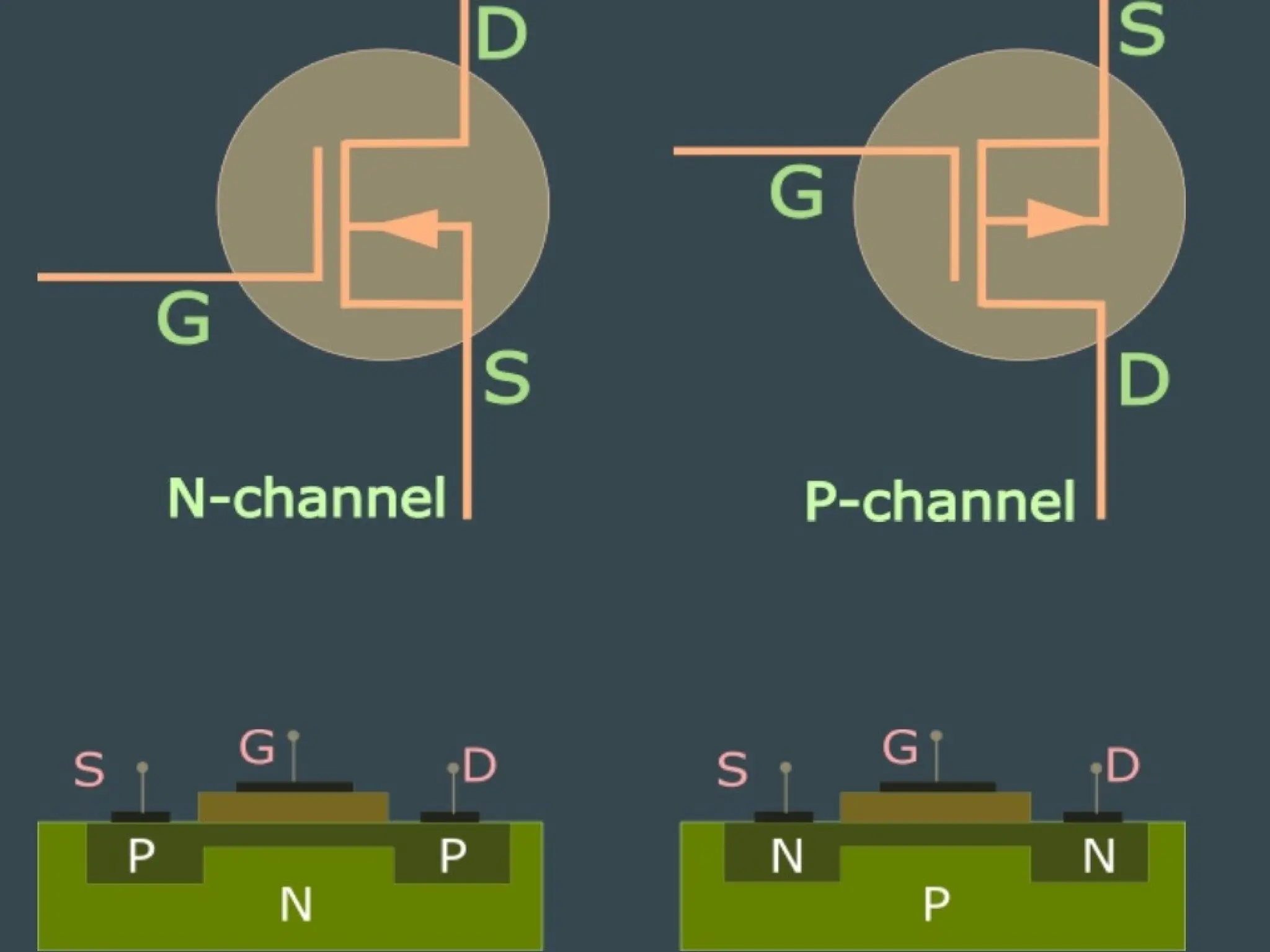 Depending upon the substrate used, they are called as P-type and N-type MOSFETs.