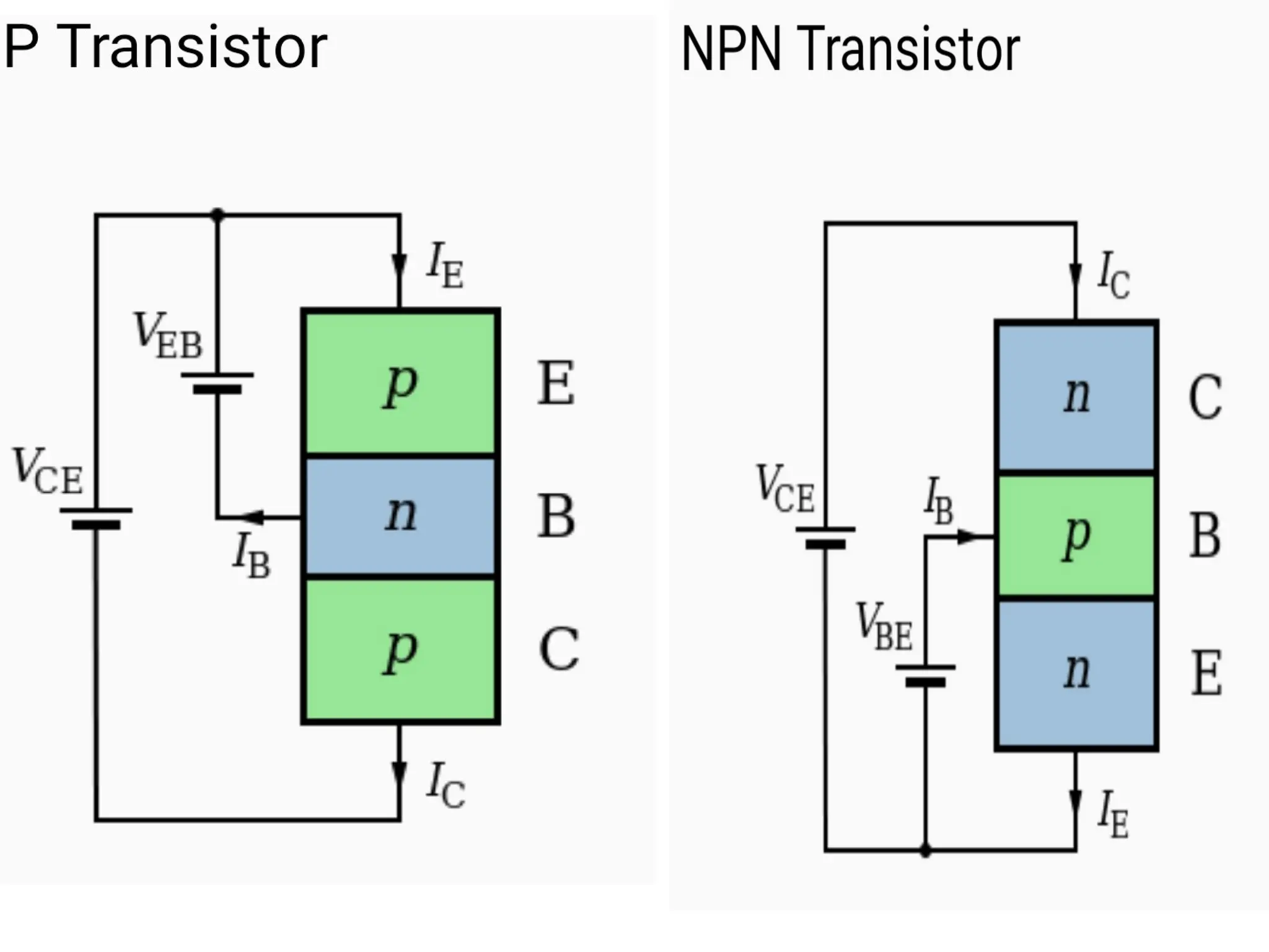 They are PNP and NPN which means an N-type material between two Ptypes and the