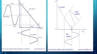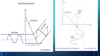 3. A power amplifier amplifies low-power audio signals from devices like radios or guitars to levels that can drive speakers or headphones. It uses transistors configured to handle higher currents than a typical voltage amplifier.