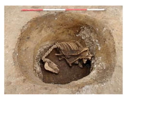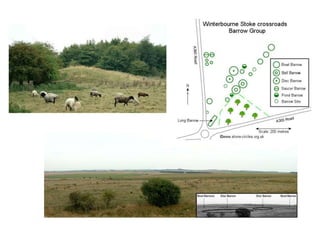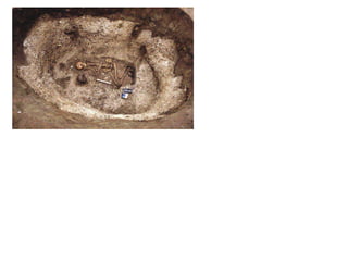 Regional variations in burial practices emerged in Neolithic Britain, with long barrows common in southern England and stone chambers in western Britain. Burial mounds were often located prominently overlooking settlements. Collective burials containing disarticulated remains suggested excarnation. Later, megalithic tombs with stone passages and chambers covered by mounds appeared in Ireland, Wales, Scotland. Beaker burials around 4700 years ago featured crouched inhumations under round barrows. Wealthier Bronze Age burials from around 4200 years ago contained continental-style grave goods indicating a warrior elite.
