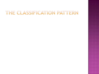 The document discusses different thought patterns used in writing such as time order, space order, listing, and classification patterns. It provides examples of transition words that can signal each thought pattern, including words like "after", "next", and "besides" for time order and "another" and "characteristics" for classification patterns. The document also examines the uses of thought patterns for narration and processes as well as transitions words that establish spatial relationships.