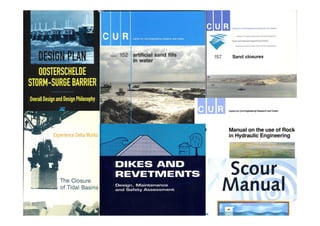 The document discusses the impact of the Delta Works project in the Netherlands on recent developments in hydraulic engineering. The Delta Works project involved large-scale flood protection works completed in the 1970s, including storm surge barriers and coastal defenses. This project stimulated new research and innovation, leading to transitions in techniques such as the use of geotextiles and composite filters, load-based filter design, block revetments, and consideration of environmental impacts in project design. The Delta Works had a significant influence on advancing knowledge and practice in hydraulic engineering.