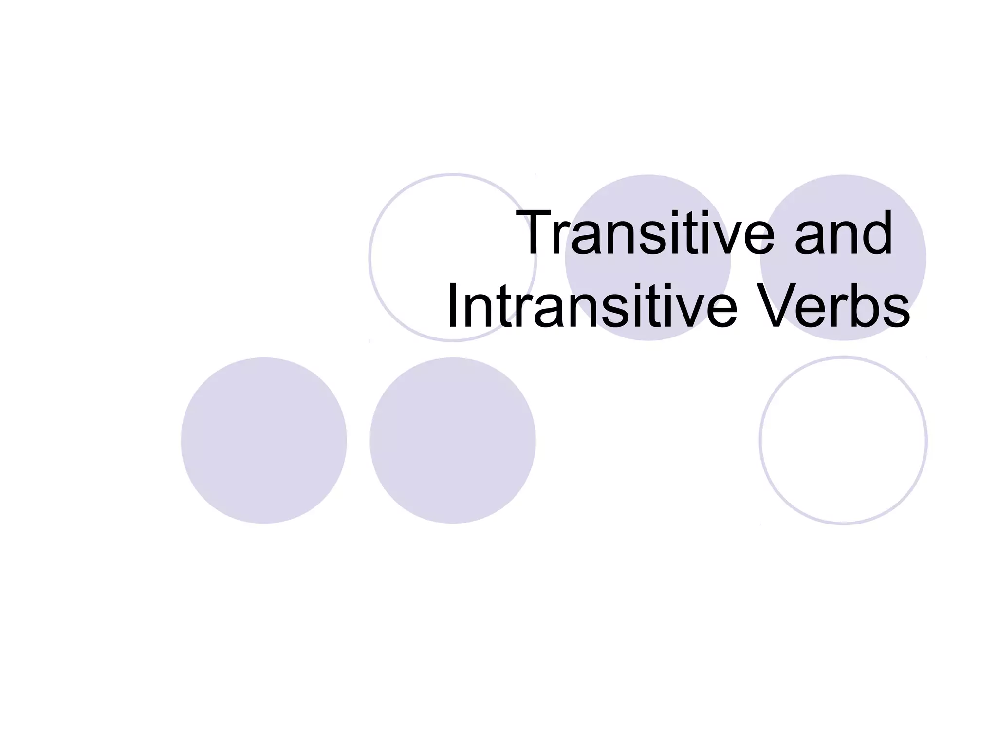 This document discusses the difference between transitive and intransitive verbs. A transitive verb takes a direct object, answering the question "what?" or "whom?" after the verb. An intransitive verb does not take a direct object. Some verbs can be both transitive and intransitive depending on how they are used in a sentence. Examples are provided to illustrate transitive verbs like "wrote" and "shook" as well as intransitive verbs like "applauded" and "shook." The document concludes by noting verbs are complex but essential to sentences and advises keeping writing simple.