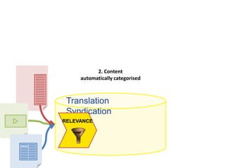 Media share content through content management systems which automatically categorizes and translates content so that relevant localized versions appear in other CMSs, allowing media to incorporate, localize, and republish the material.