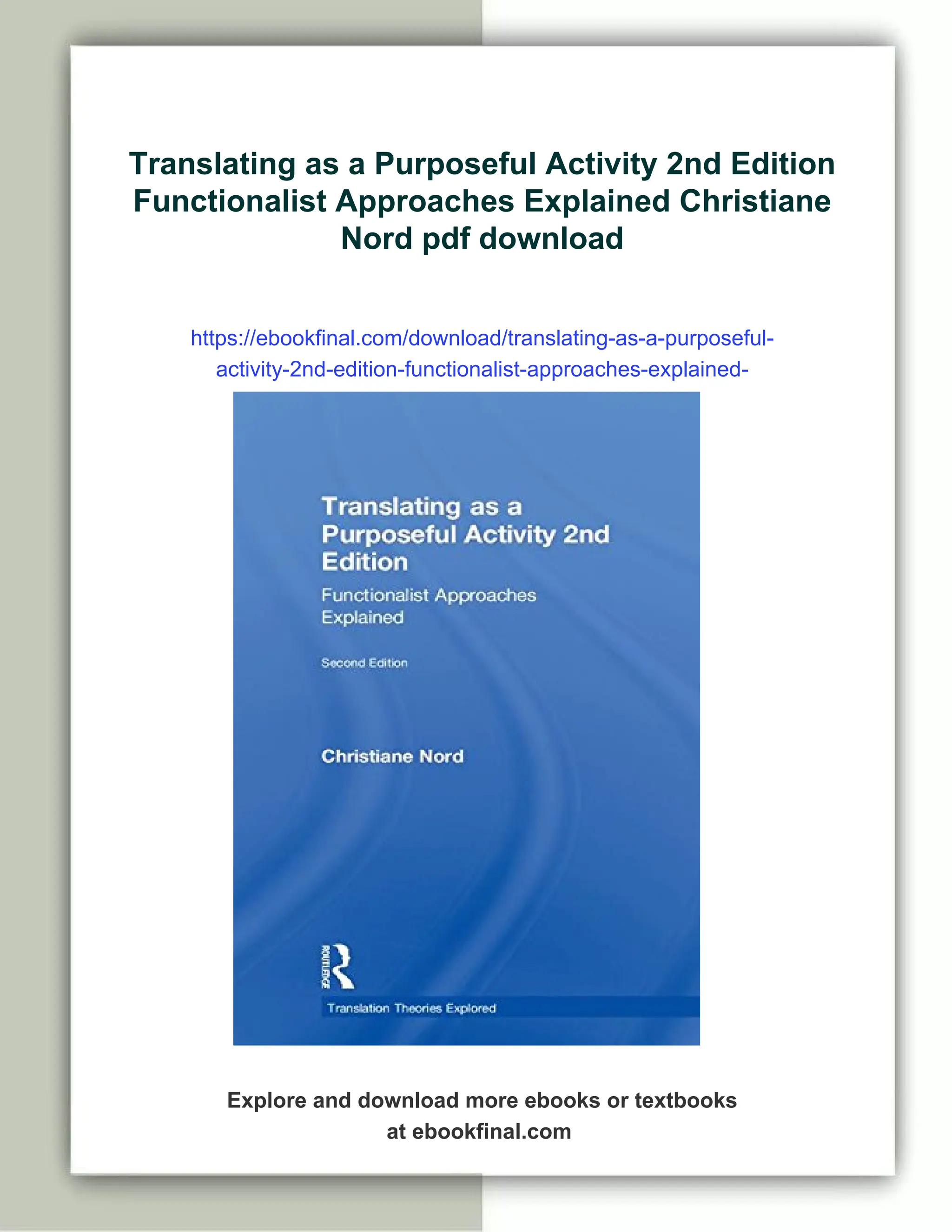 Translating as a Purposeful Activity 2nd Edition Functionalist Approaches Explained Christiane Nord