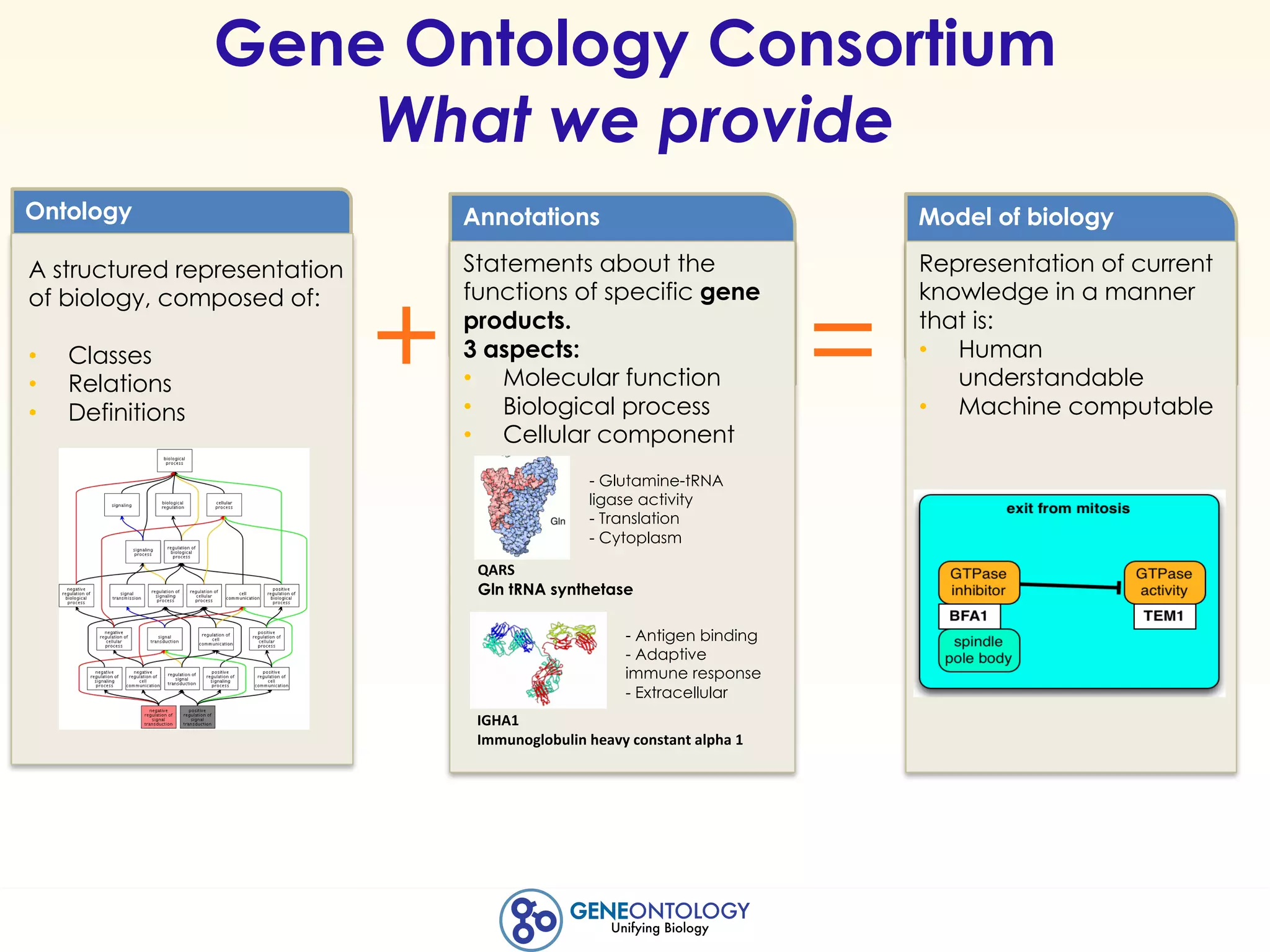 This document discusses Gene Ontology (GO) annotations, which are statements linking genes to aspects of their functions as represented by GO terms. Annotations are generated through manual literature curation, manual sequence analysis, or algorithmic prediction. They are assigned evidence codes and references and represent the normal biological roles of gene products based on molecular function, biological process, and cellular component. Guidelines are provided for producing high-quality, literature-based annotations that accurately reflect experimental conclusions and biological context.