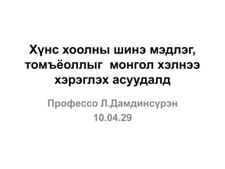 Хүнс хоолны монгол уламжлал, хэрэглээний шинэ үе PPTX