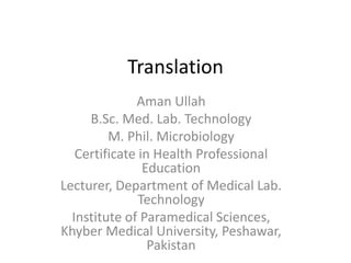 This document discusses the process of translation in three sentences: