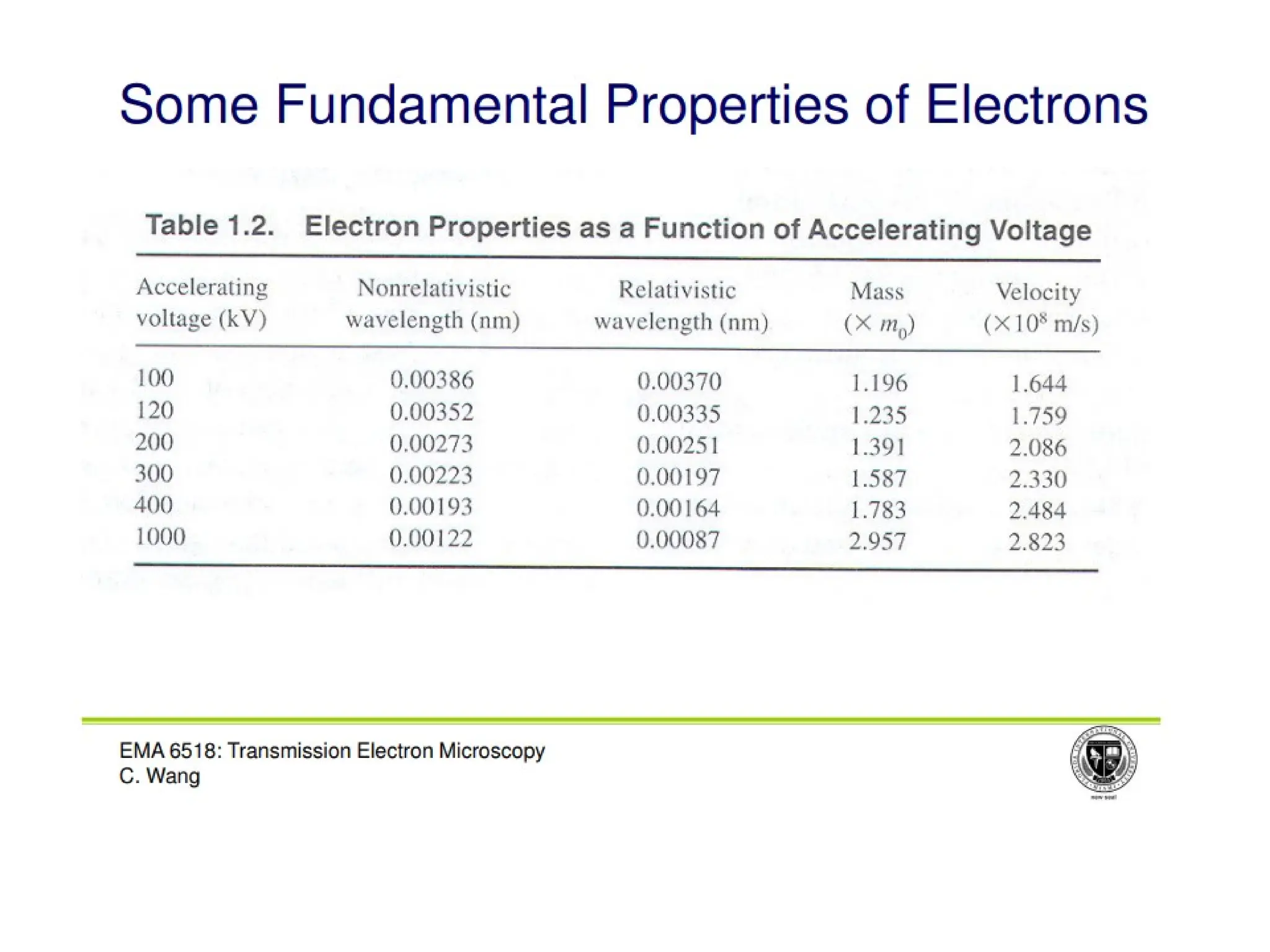 The wavelength ofan electron is dependent upon accelerating voltage and is given by: