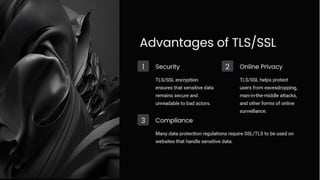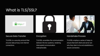 Transport Layer Security (TLS/SSL) is essential for secure internet communication, utilizing encryption, authentication, and data integrity. Common use cases include financial transactions, e-commerce, and email, which require protection of sensitive information. As HTTPS becomes more prevalent, users can trust that their data is safeguarded from external threats.