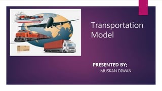 This document discusses transportation models and methods for solving transportation problems. It describes the transportation problem as minimizing the cost of distributing products from multiple sources to multiple destinations. It notes that the problem can be balanced, with equal total supply and demand, or unbalanced. Common solution methods presented are the northwest corner rule, row minima method, column minima method, and least cost method. These determine the lowest cost allocation of products from sources to destinations.
